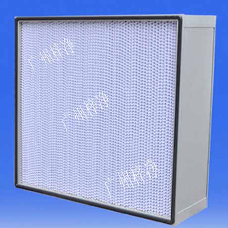 鋁框有隔板高效過濾器隔板:波紋型鋁箔或鍍乙烯隔板。采用超細(xì)玻璃纖維高密度濾紙。