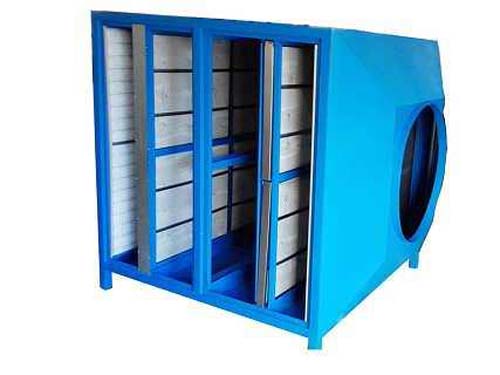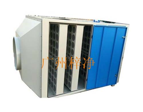 里面用角鐵打上一個一個的架子,活性炭除味箱內放有活性炭初效過濾器,袋式中效過濾器或者活性炭過濾器,活性炭高效過濾器一般用在排風處。