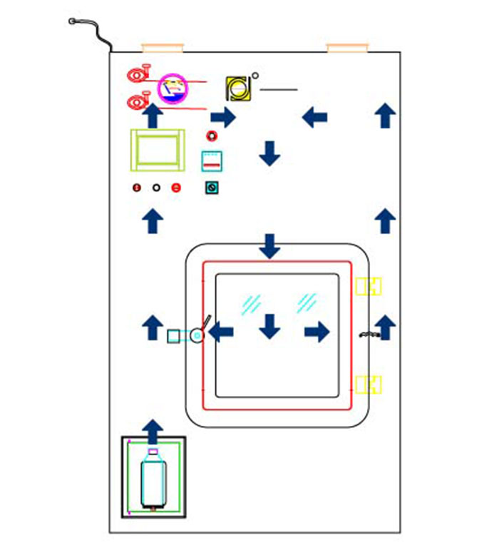 除殘留——停止輸入過(guò)氧化氫氣體,將滅菌系統(tǒng)切換到除殘留系統(tǒng),使隔離器內(nèi)的過(guò)氧化氫氣體循環(huán)通過(guò)催化器進(jìn)行分解,降低過(guò)氧化氫濃度在10PPM以下,然后通過(guò)通風(fēng)以達(dá)到殘留值不大于1ppm。